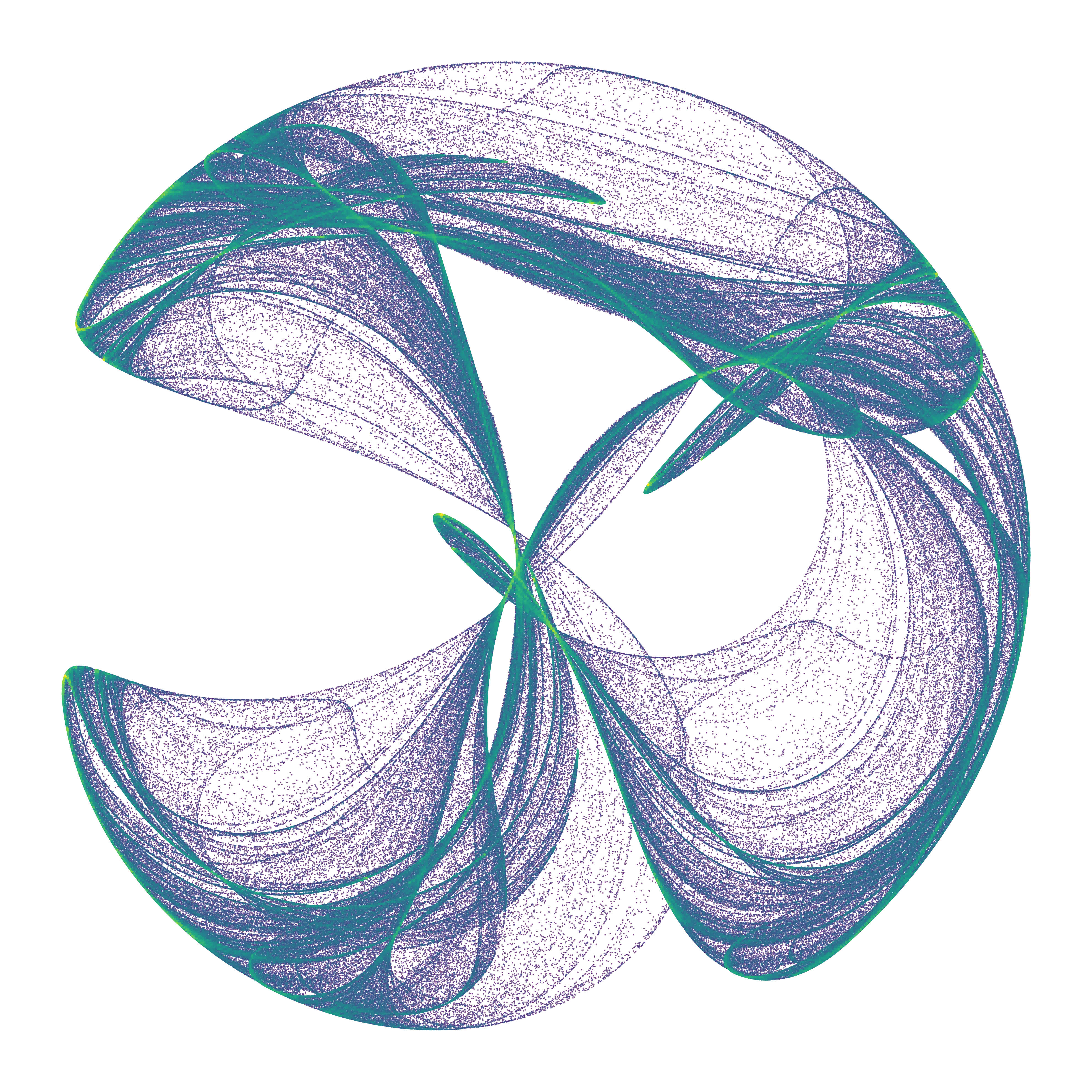 Where \(a, b, c, d\) are parameters that define the specific shape of the attractor.